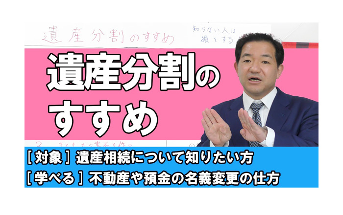【いよいよ本番!】遺産分割のすすめ 【対象】遺産相続について知りたい方【学べる】不動産や預金の名義変更の仕方 一般の方向けに、わかりやすく、身近な困りごとや悩み事について、法律でどのように解決できるのか、幅広く解説しています。動画における、法解釈や法律用語の使用法はあくまで増川独自のものであり、一般的(専門的)な定義とは異っている場合もあります。分かりやすさを重視していますので、あまり学術的にとらないでいただけると嬉しいです。 ※公式YouTubeページへ移行します※ 【サクッと確認!】これって遺産? 前の記事 【必見!まさか自分が!?】相続人には誰がなる? 次の記事